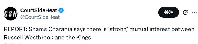 Shams在节目上说道:“拉塞尔-威斯布鲁克与萨克拉门托国王队之间存在强烈的双向兴趣。国王队正需要一名替补控卫。上赛季他们的替补得分和替补助攻两项数据均排名联盟第29位。威斯布鲁克的加盟恰好能改善这一情况,而且他与国王队管理层及球员的关系都不错。”